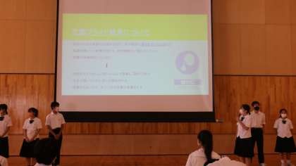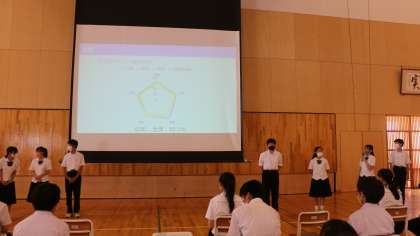 各クラスから生徒が一人、1学期を振り返り、自分ががんばってきたことを発表しました。