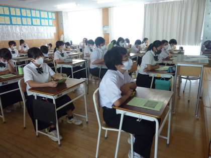 1年生は、Zoom-meetingを利用し、教室で終業式に参加しました。どのクラスからも真剣な態度で終業式に臨む1年生の様子が見られました。