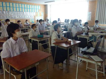 1学期終業式(1年生:その2) 公開日 2021/07/21 更新日 2021/07/21 芝園の一日 7月21日(水) 1学期終業式の1年生の様子です。 1年生は、Zoom-meetingを利用し、教室で終業式に参加しました。どのクラスからも真剣な態度で終業式に臨む1年生の様子が見られました。 写真上:B組の様子 写真中:C組の様子 写真下:D組の様子