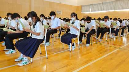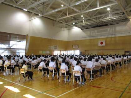 校長の式辞では、大リーグエンゼルスの大谷選手の目標達成シートが紹介され、生徒は目標をもって、夏休みを過ごそうと決意を新たにしていました。