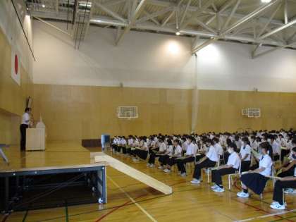 今日は、2、3年生が体育館に入りました。両学年とも、暑い中でも、全員が姿勢を正して臨み、一学期を振り返ることができました。
