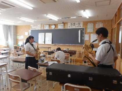 部活動の様子(その2) 公開日 2021/07/22 更新日 2021/07/22 芝園の一日 7月22日(木) 吹奏楽部は、来る7月31日(土)に行われる、中部日本吹奏楽コンクール富山県大会に向けて、練習に励んでいます。各パートに分かれて、熱心に活動に取り組みました。