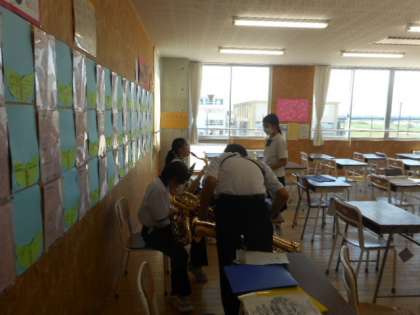 吹奏楽部は、来週末に行われる中部日本吹奏楽コンクール富山県大会に向けて、練習に励んでいます。パート練習では、上級生が下級生にアドバイスをする様子が見られました。