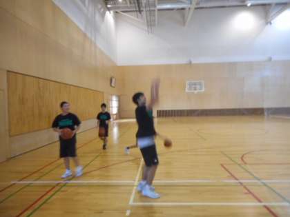 男子バスケットボール部は、シュートフォームの確認をしました。