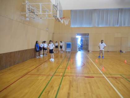 女子バスケットボール部は、ディフェンスフットワークを確認しました。