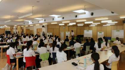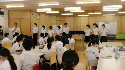生徒が下校した後、高校生たちは反省会を行い、知識や経験をさらに伝えられるよう話し合いました。
