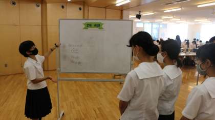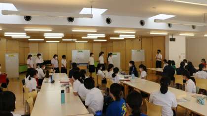 生徒が下校した後、高校生たちは反省会を行い、知識や経験をさらに伝えられるよう話し合いました。