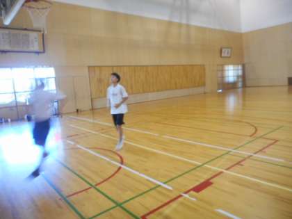 今日は、オールコートを使ったツーメンパスからのシュート練習をしました。