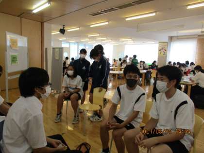 中学生は、高校生活に興味津々、高校生は中学校生活を思い出しながら、有意義な時間を過ごしました。