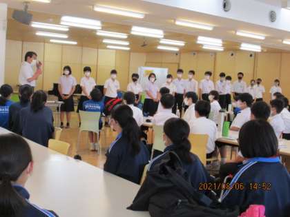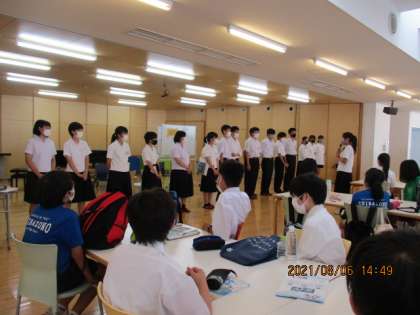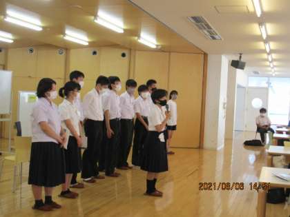 「超スペシャルSKIP!」「どこからでもSKIP!」5日目(その6) 公開日 2021/08/06 更新日 2021/08/06 芝園の一日 8月6日(金) 5日間の最後に、閉校式を行いました。 在校生から卒業生へ、卒業生から在校生に言葉を送りました。 最後に校長先生からのお話をいただきました。