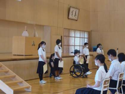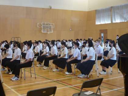 GSSのメンバーは体育館で始業式に参加しました。