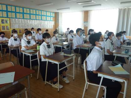 1年生はZoom-meetingを利用して、教室で始業式に参加しました。