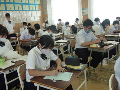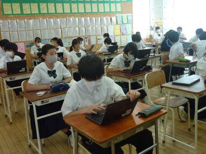 担任の先生の話の後、2学期の目標や作文を書いたり、chromebookを使用して生活振り返りアンケートに答えたりしました。