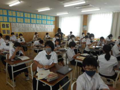 家庭科では、夏休みの課題であった「夏野菜を使った昼食メニュー」について発表しました。