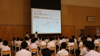 また、進路についてのお話がありました。入試についてや、これから意識して取り組んでもらいたいことなどを、真剣に聞いていました。