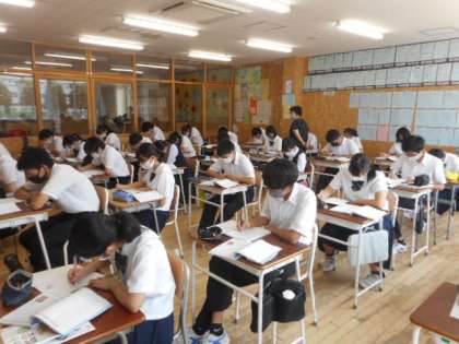 9月3日(金) 3年生の授業の様子です。 数学では、2次方程式の応用問題に取り組みました。