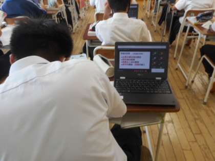 音楽では、合唱コンクールの自由曲の練習をしました。感染症対策を心がけて活動しています。