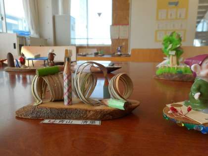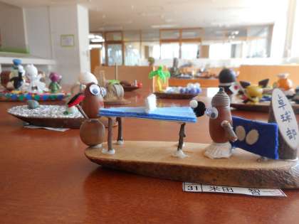 美術科の夏休みの課題「素材を活かして」を展示しています。