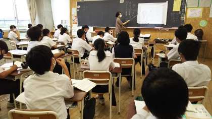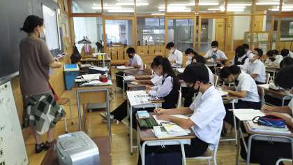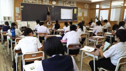 本日の授業(2年生:その4) 公開日 2021/09/08 更新日 2021/09/08 芝園の一日 9月8日(水) 2年生の国語の様子です。 「字のない葉書」という教材で、「三要素の確認」を課題として取り組みました。。