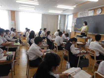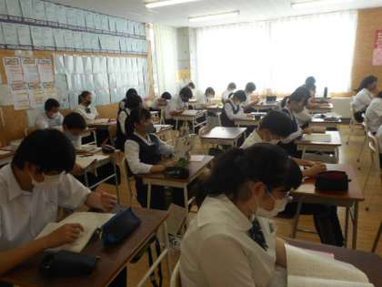 本日の授業(3年生:その2) 公開日 2021/09/09 更新日 2021/09/09 芝園の一日 9月9日(木) 3年生の授業の様子です。 理科では、力学に分野の学習をしました。 国語では、魯迅作の「故郷」の朗読を聞きました。