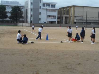 体育では、ソフトボールに取り組みました。守備の連携の練習をしました。