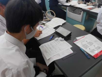 理科では、斜面を移動する物体の速さを求める実験の結果をまとめ、考察しました。