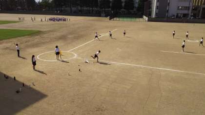 本日の授業(1年生:その1) 公開日 2021/09/15 更新日 2021/09/15 芝園の一日 9月15日(水) 1年生の体育の様子です。 1年生は男女混合でソフトボールに取り組んでいます。 隣のグラウンドでは、小学生が体育をしているのも見えます。 芝園中学校ならではの光景です。
