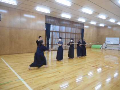 男子バスケットボール部は、ブロックをかわすスクープショットとツーメンパスからのシュート練習に取り組みました。剣道部は、感染症対策を意識して距離をとって練習をしました。