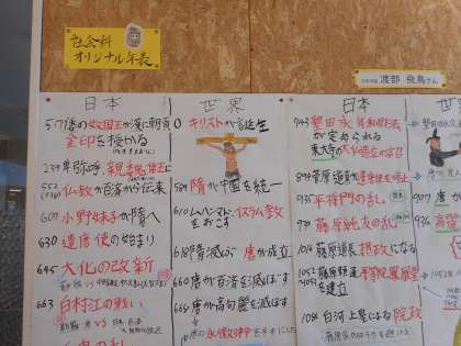 社会科では、夏休み中自主学習に取り組みました。オリジナル年表を制作している人もいました。