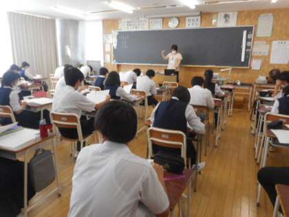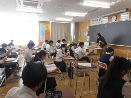 本日の授業(3年生:その1) 公開日 2021/09/21 更新日 2021/09/21 芝園の一日 9月21日(火) 3年生の授業の様子です。 数学と社会では、先日行った、校内学力調査の問題の解説を聞き、次回に向けて、注意すべき点を確認しました。