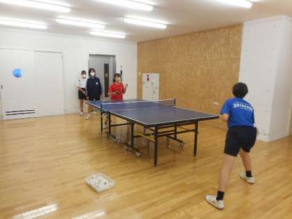卓球部は、基礎打ちの練習をしました。何種類かのサーブを試していました。