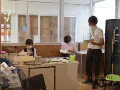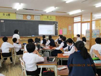放送室から出題し、各教室のスクリーンを見ながら回答しました。