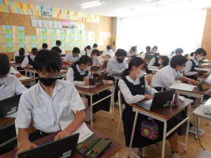 「平和」な社会を目指して〜多様性と調和〜というテーマのもと、個人の研究テーマ決定に向けて、調べたり研究の項目について考えたりしました。「平和」とはどんなことなのか、自分なりに考えを深めていました。