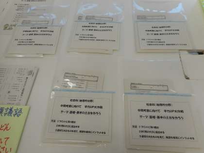 BC間には、自主学習(学力補充)用に社会や国語のプリントが置かれています。