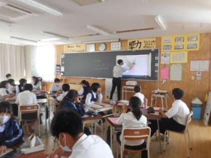 英語では、ALTの先生と英語表現を通して、学習した内容を確認しました。