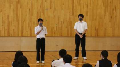 2学年 学年集会(その1) 公開日 2021/10/04 更新日 2021/10/04 芝園の一日 10月4日(月) 本日の2学年 学年集会の様子です。 2学年から生徒会選挙に立候補する生徒を紹介し、意気込みや思いを聞きました。 学年主任から、今月末に行われる予定の校外学習についてのお知らせがありました。