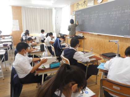 数学では、方程式の計算問題に繰り返し取り組み学力の定着を図りました。