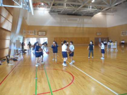 体育では、バスケットボールに取り組みました。ボールの中心を捉えてコントロールする練習をしました。