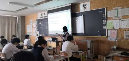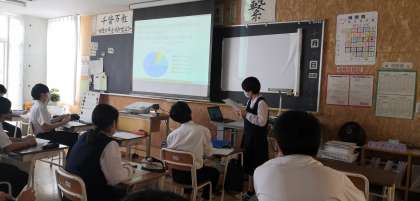 前時までにchromebookを使い調べ、スライドで作成し発表していました。