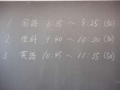今日は、1限国語、2限理科、3限英語を実施しました。