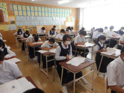 10月8日(金) 1年生の中間考査2日目の様子です。 1限社会、2限国語を実施しました。