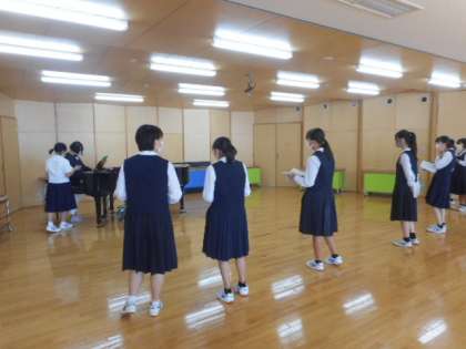 音楽では、合唱コンクールの自由曲をパートに分かれて歌いました。