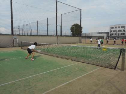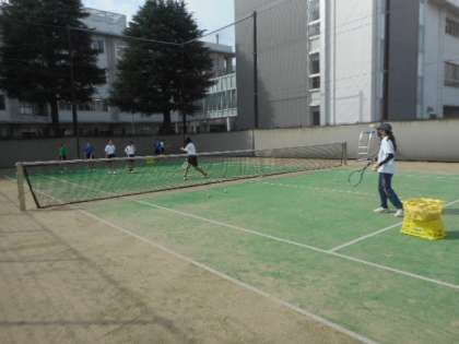 女子ソフトテニス部は、ボレー練習に取り組みました。顧問の先生からのアドバイスを受けて、プレーに生かそうとしていました。