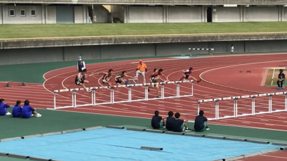 男子走幅跳、110mHで8位以内に入りました。その他の生徒もベストを尽くし、自己記録を更新した喜びや思い通りの記録が出せない悔しさを味わいました。
