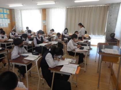 数学では、方程式の計算問題に繰り返し取り組み、学力の定着を図りました。