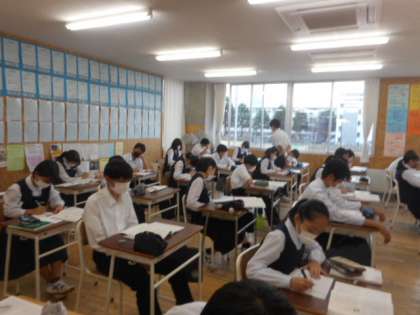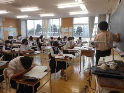 数学では、図形について学習しました。三角形の相似条件について確認し、証明問題に取り組みました。