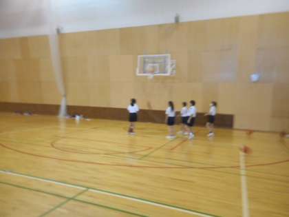 体育では、バスケットボールに取り組みました。ゴール下のシュート練習では、制限時間内に何本シュートを決められるか挑戦しました。