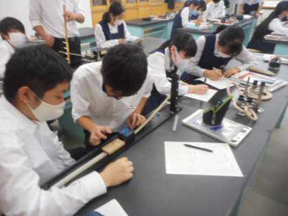 本日の授業(3年生:その2) 公開日 2021/10/13 更新日 2021/10/13 芝園の一日 10月13日(水) 3年生の授業の様子です。 社会では、日本国憲法について学習しました。 理科では、位置エネルギーについて、実験をもとに考察しました。