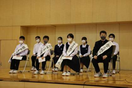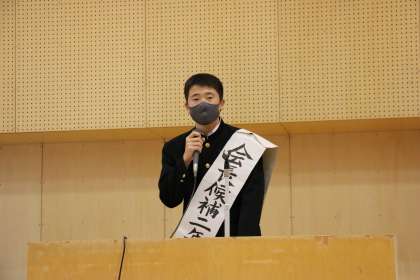 令和3年度後期・令和4年度前期の生徒会会長・副会長に立候補した計4名の生徒が演説を行いました。