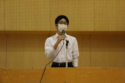 生徒会役員選挙・立会演説会(その2) 公開日 2021/10/14 更新日 2021/10/14 芝園の一日 10月14日(木) 昨日行われた生徒会選挙・立会演説会の様子です。 令和3年度後期・令和4年度前期の生徒会会長・副会長に立候補した計4名の生徒が演説を行いました。 日頃からよりよい学校生活のことを考え、それを実現するための案や思いを語りました。